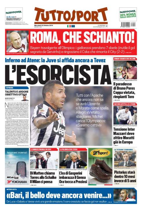 Su Tuttosport si parla di Tevez che questa sera dovrà condurre la Juventus alla vittoria contro l’Olympiakos in un clima infernale.