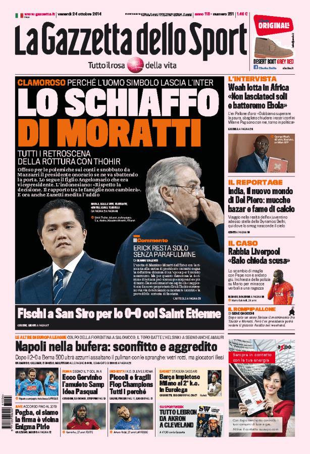 Ieri è arrivata la clamorosa decisione di Moratti di lasciare la carica di presidente onorario. Anche il figlio ha dato le dimissioni.