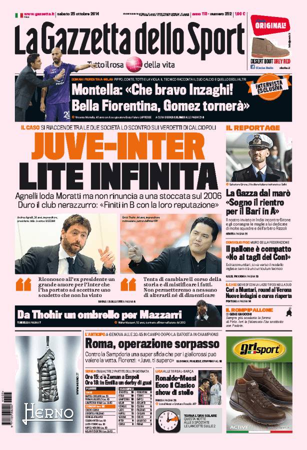 La Gazzetta dello Sport parla del botta e risposta tra Juventus e Inter con i nerazzurri che hanno risposto in maniera pungente ad Agnelli.