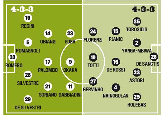 Questa sera anticipo allo stadio Marassi di Genova tra la Sampdoria di Sinisa Mihajlovic e la Roma di Rudi Garcia che dovrà riscattare il sette a uno subito in Champions League dal Bayern Monaco. La squadra giallorossa cambierà qualche titolare infatti a sinistra ci sarà spazio per Holebas al posto di Cole: anche in attacco qualche cambiamento, fuori Iturbe e dentro Florenzi. Nella Sampdoria invece tridente d’attacco formato da Eder, Gabbiadini e soprattutto Okaka che sogna un gol dell’ex: per i doriani centrocampo con Obiang, Palombo e Soriano. Le probabili formazioni secondo la Gazzetta dello Sport.