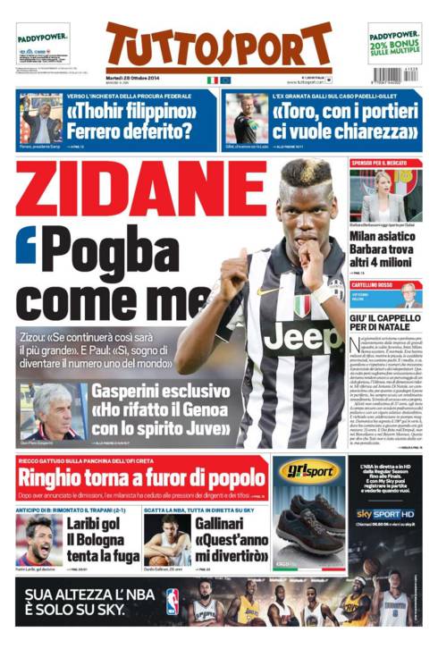 Su Tuttosport vengono riportate le parole di Zidane che incorona il giovane francese Paul Pogba come suo erede.