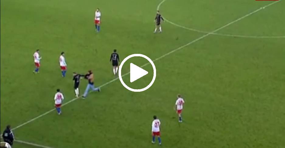 Disavventura per Frank Ribery durante la partita di mercoledì sera che ha visto il Bayern Monaco sul campo dell’Amburgo per la Coppa di Germania. Il francese è stato colpito da una sciarpa di un invasore di campo che aveva puntato proprio l’esterno francese. Il tifoso della squadra di casa, prima di essere fermato dal servizio di sicurezza, ha anche insultato Ribery con gesti inequivocabili. Di seguito il video.