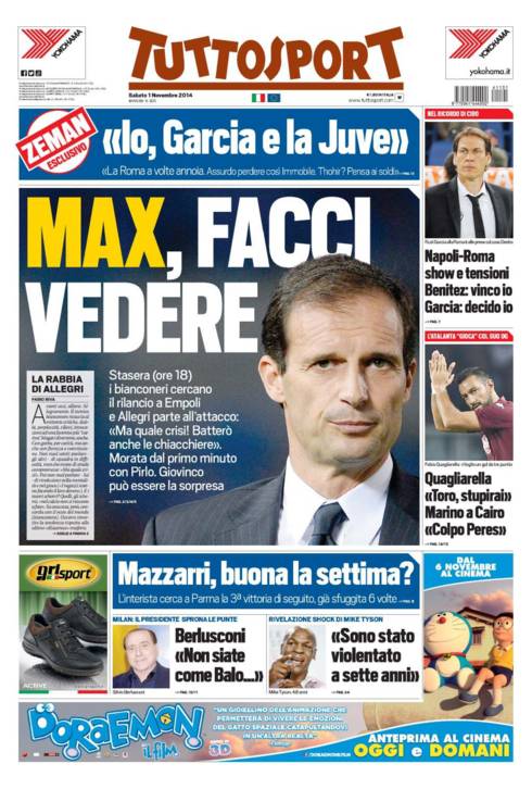 Su Tuttosport si parla della rivoluzione di Allegri che contro l’Empoli manderà in campo la coppia titolare Giovinco-Morata.