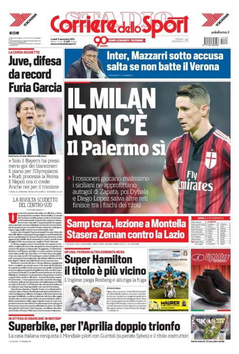 Anche il Corriere dello Sport parla della sconfitta interna del Milan contro il Palermo per due a zero. Rossoneri inesistenti.