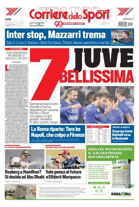 Sul Corriere dello Sport si parla della straripante vittoria della Juventus contro il Parma per sette a zero.