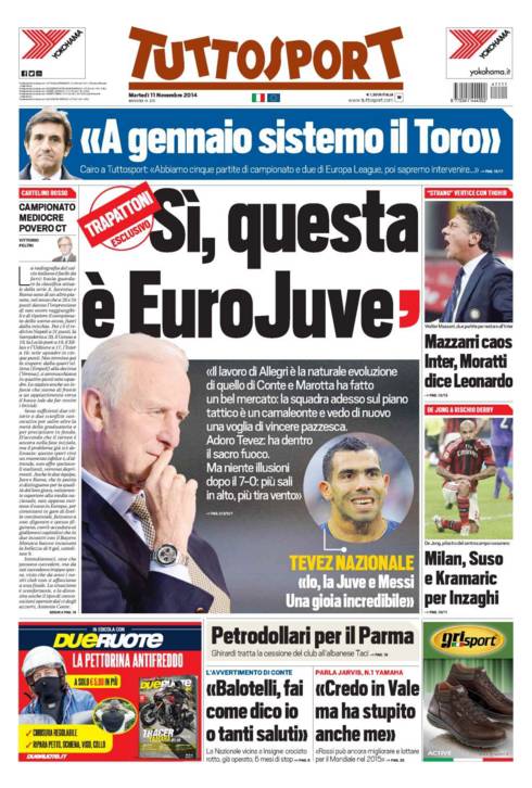 Tuttosport – Trapattoni ‘Sì, questa è Euro-Juve’ 11/11/2014 di Ruggieri Su Tuttosport intervista esclusiva a Giovanni Trapattoni che ha elogiato il nuovo modulo della Juventus adatto alla Champions League. Samuele Roccati