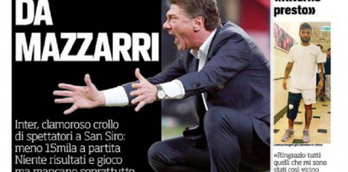 Il Corriere dello Sport ha analizzato il momento dell’Inter con i tifosi che sono calati come presenza allo stadio per colpa del gioco e dei risultati dell’Inter di Mazzarri.