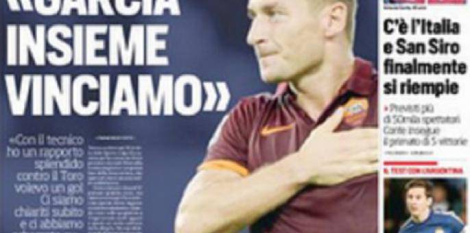 Sul Corriere dello Sport si parla del rapporto tra Totti e Garcia con il capitano che chiarisce l’episodio di domenica sera.