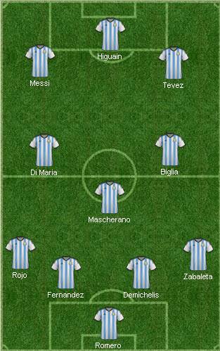 Già l’Argentina poteva contare su gente come Messi, il migliore giocatore al mondo al pari di Cristiano Ronaldo, Higuain, bomber infallibile, Di Maria, jolly di lusso e Mascherano, leader in campo e fuori. Da mercoledì l’Albiceleste potrà contare anche sui gol e l’esperienza di Carlitos Tevez in un tridente offensivo che si preannuncia atomico. Come si vede nella grafica, la nuova Argentina si rivela squadra temibile e competitiva in ogni reparto. In porta spazio a Romero, estremo difensore della Samp, difesa a quattro con Zabaleta e Rojo sugli esterni e Demichelis-Fernandez centrali. In mezzo al campo ecco Mascherano quindi Di Maria, costosissimo colpo di calciomercato dello United, e Biglia. In attacco? Messi, Higuain e Tevez.