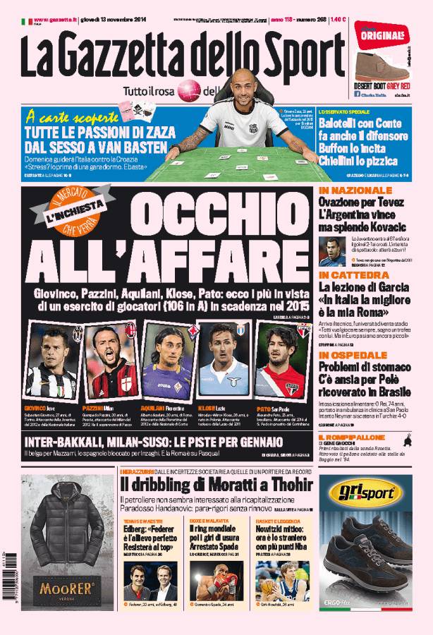La Gazzetta dello Sport parla di tutti quei giocatori che sono in scadenza di contratto a giugno. In Serie A sono 106.