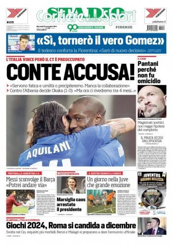 Anche il Corriere dello Sport parla di Conte che si è sfogato contro i club che non aiutano la Nazionale a crescere.