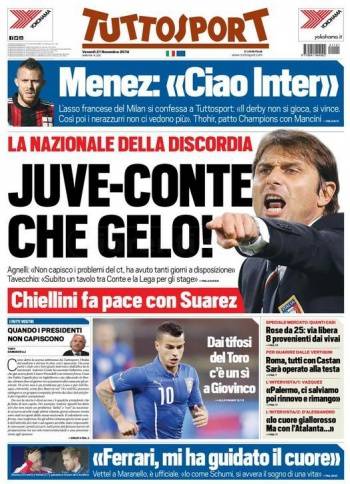 Tuttosport parla invece del gelo tra Antonio Conte e la Juventus dopo le ultime dichiarazioni del c.t. riguardo la Nazionale e la risposta di Agnelli.