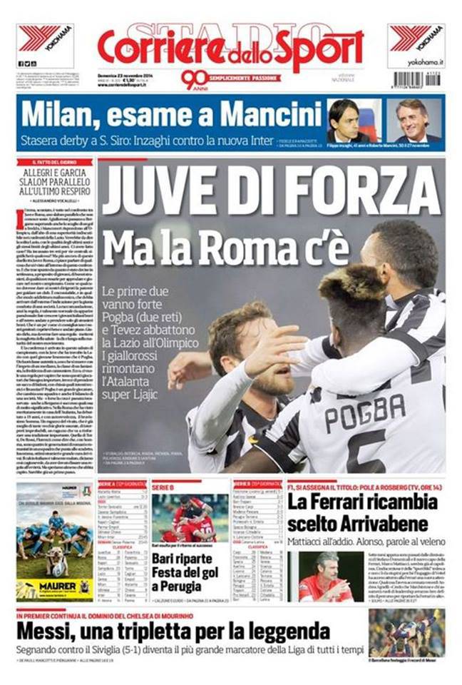 Le prime due vanno forte: Pogba e Tevez abbattono la Lazio all’Olimpico. I giallorossi rimontano l’Atalanta: super Ljajic. Milan, esame a Mancini. Stasera derby a San Siro: rossoneri contro la nuova Inter.