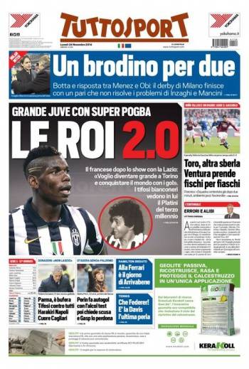 Tuttosport omaggia Paul Pogba, centrocampista francese della Juventus sempre più vicino alla leggenda Michel Platini.