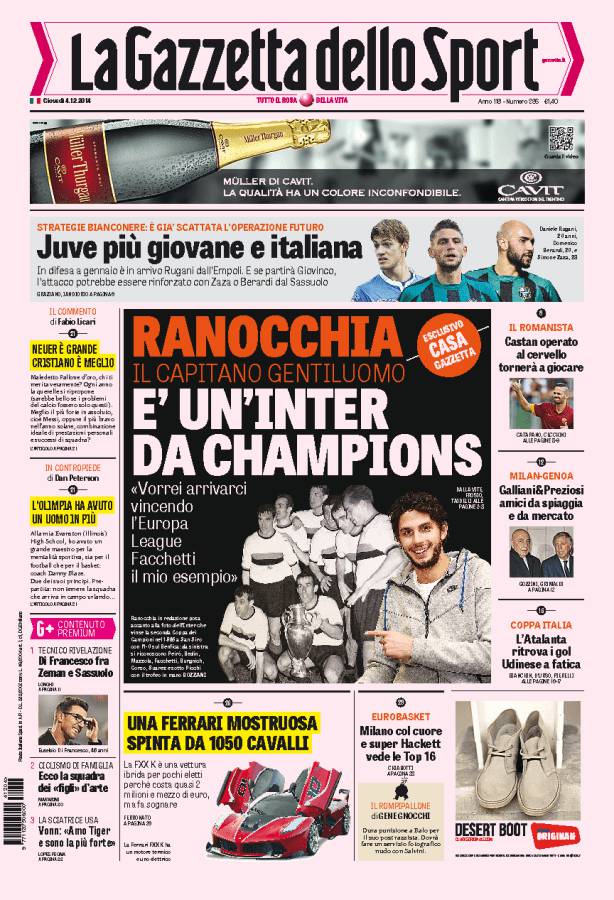Alla Gazzetta dello Sport parla Andrea Ranocchia, difensore italiano dell’Inter, che ha parlato della squadra nerazzurra.