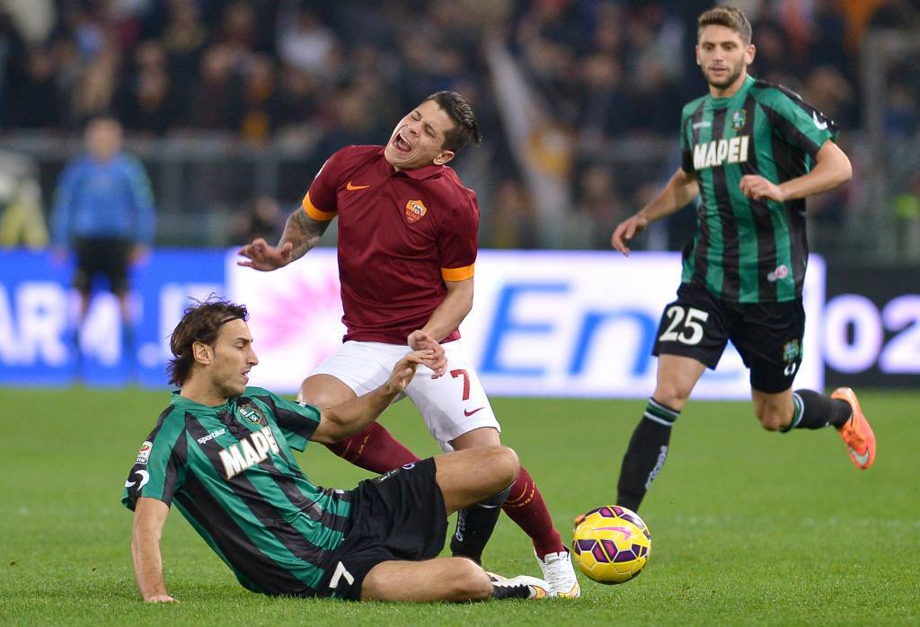 Partita pazzesca allo stadio Olimpico dove, nel primo anticipo del sabato della 14a giornata di serie A, la Roma di Rudi Garcia non riesce ad approfittare del mezzo passo falso della Juventus contro la Fiorentina pareggiando davanti al pubblico di casa contro un Sassuolo determinato a portare a casa un risultato utile. A siglare le reti dei neroverdi è stato Simone Zaza che, prima approfitta di una svista clamorosa di Morgan De Sanctis che, su retropassaggio di Yanga Mbiwa, si fa sorprendere dall’attaccante del Sassuolo e poi punisce in contropiede la formazione giallorossa. La Roma cerca di riprendere in mano le redini del gioco ma, complice anche l’espulsione di De Rossi, sembra tutto compromesso ma Ljajic si prende sulle spalle la squadra e, prima su calcio di rigore e poi su azione regala il pareggio alla squadra giallorossa. Bianconeri che allungano così di un punto sulla squadra di Garcia. Ecco voti e tabellino: