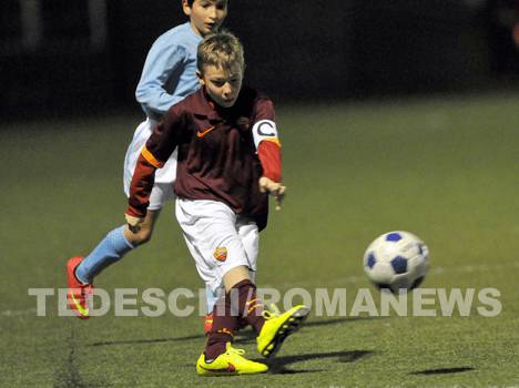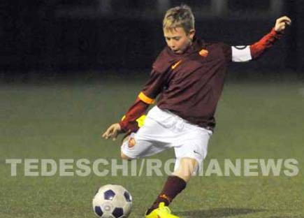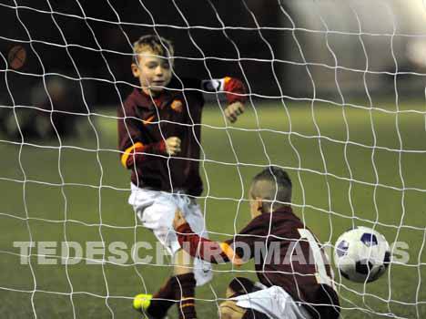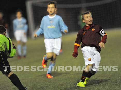 Ha già tanta voglia di ripercorrere le orme del padre, nonostante la giovane età, e per questo con grande scrupolo segue quasi tutti i dettagli: maglia numero 9, proprio come papà Francesco nelle giovanili, e fascia da capitano al braccio, come papà Francesco fa adesso. Cristian Totti, figlio del capitano e numero 10 della Roma, ha ieri fatto il suo esordio nel derby della categoria Pulcini tra la Roma e la Lazio. Un gol per il piccolo Cristian e vittoria in cassa con un netto 4-1, maturato in una gara 7vs7. Ecco le foto dell’esordio del ‘Pupino’ Totti, tratte da RomaNews: