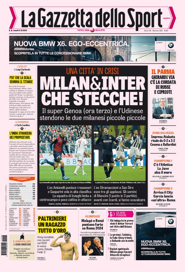 Nel giorno di Sant’Ambrogio Milan e Inter perdono rispettivamente contro Genoa e Udinese. I nerazzurri affondano in casa.