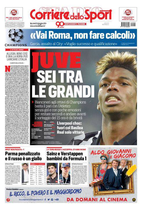 Il Corriere dello Sport parla della Juventus che approda negli ottavi di finale di Champions League dopo lo zero a zero contro l’Atletico Madrid.