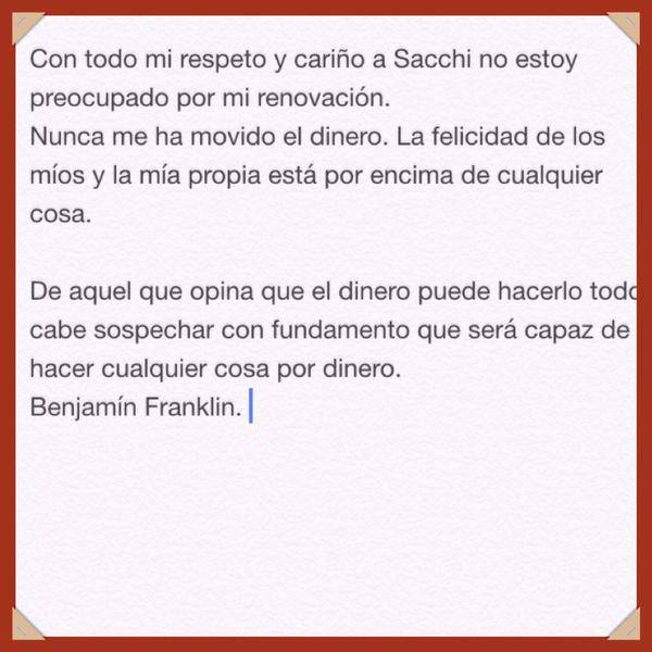 Polemica a distanza tra il difensore del Real Madrid, Sergio Ramos, e Arrigo Sacchi che, sulle pagine della Gazzetta dello Sport, aveva espresso dubbi sul rinnovo contrattuale del difensore spagnolo. Il vice capitano del Real, ha risposto a Sacchi, attraverso la sua pagina Facebook con un comunicato con annessa citazione di Benjamin Franklin: “Con tutto il rispetto e l’affetto per Sacchi, non sono preoccupato per il mio rinnovo. Non sono mai stato mosso dai soldi, in cima a qualunque cosa metto la felicità mia e dei miei cari”.