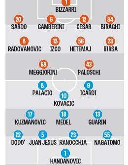 L’Inter di Roberto Mancini vorrebbe trovare i tre punti sul campo del Chievo Verona. I nerazzurri arrivano dal pareggio nel derby contro il Milan e dalle due sconfitte consecutive contro Milan e Udinese, Mancini ha caricato la squadra parlando comunque di posto Champions per i nerazzurri. Kovacic giocherà da trequartista dietro le due punte Palacio e Icardi, con Medel, Guarin e Kuzmanovic centrali di centrocampo. In difesa tutto confermato con il recupero di Dodò a sinistra. Nel Chievo spazio all’ex Meggiorini in attacco con l’ex milanista Paloschi, Maran spera di ripetere le ultime belle prestazioni. Probabili formazioni secondo la Gazzetta dello Sport.