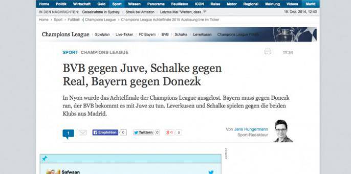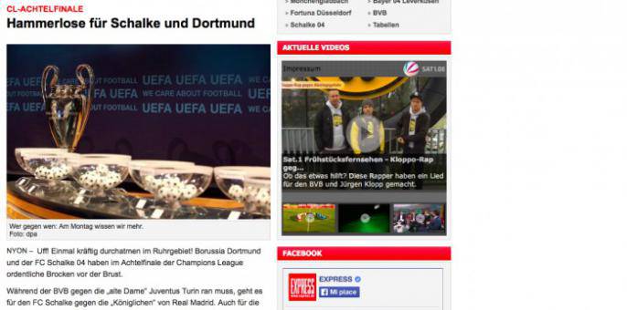 La ‘Bild’ titola “Real-Hammer für Schalke“, sottolineando il difficilissimo scontro che attende gli uomini di Roberto Di Matteo che se la vedranno con quelli di Ancelotti, lasciando nel sottotitolo lo scontro Juve-Dortmund. Più duro l”Express’, secondo cui è “Hammerlose” per entrambe le squadre. Più neutrale il ‘die Welt’.