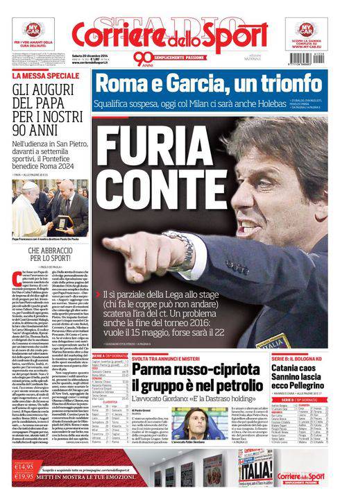 Il Corriere dello Sport parla di Antonio Conte, c.t. della Nazionale, infuriato con la Figc per il mancato stage di febbraio.