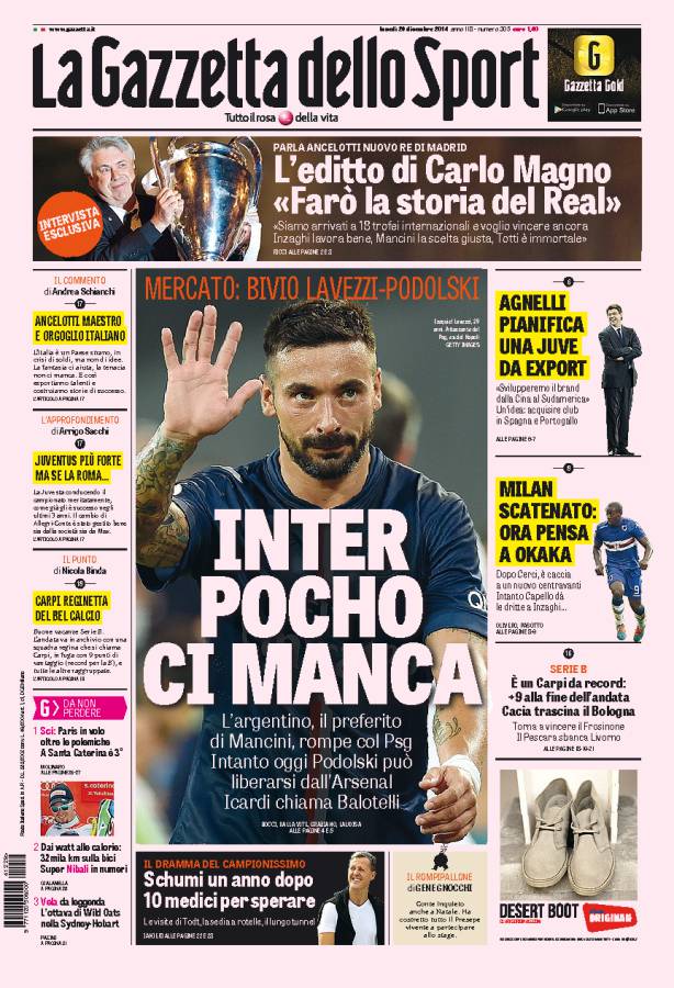 Inter pronta a prendere Lavezzi che ha rotto con il Psg. Lui o Podolski per Mancini, mentre Icardi chiama Balotelli.