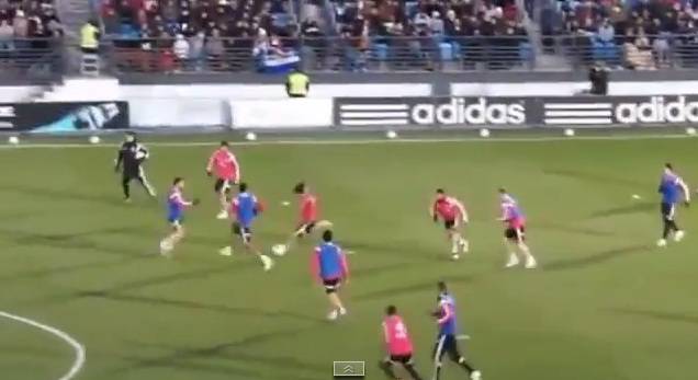 Durante l’allenamento del Real Madrid a Dubai in vista del match di domani sera contro il Milan, il gioiello spagnolo Isco ha messo a segno un gol fantastico. Classico campo ridotto, il fenomeno iberico ha preso palla mettendo a sedere almeno due compagni di squadra prima di lasciar partire un sinistro a giro che si è insaccato sotto l’incrocio dei pali. Il pubblico presente ha accolto il gol con un boato importante e ha soprattutto deciso di intonare un coro a favore di Isco. Evidentemente la magia dello spagnolo ha incantato tutti. Ecco il video.