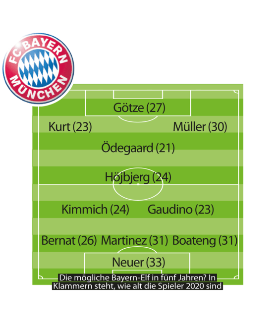 Il Bayern Monaco è una delle squadre più forti al mondo anche perchè programma il futuro e lo fa per davvero (non come alcuni club in Italia…). Stando a quanto riportato dalla Bild, i dirigenti del club tedesco avrebbero già in testa una squadra ideale per il 2020. In quell’anno infatti i vari Lahm (oggi 31 anni), Ribéry (31), Robben (30), Schweinsteiger (30) e Alonso (33) non giocheranno più. E per non perdere di qualità il Bayern ha già in mente dei giocatori in grado di sostituirli. Questo (nei piani della società) il Bayern del 2020 (fra parentesi l’età che i giocatori avranno fra 5 anni)Mo.