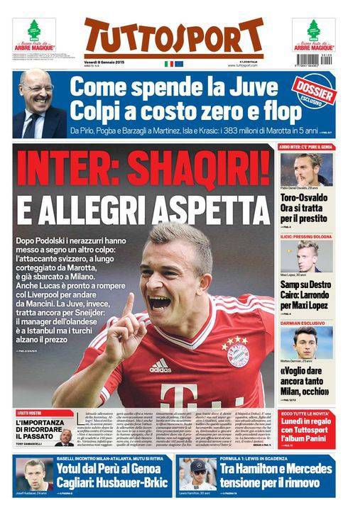 Dopo Podolski, i nerazzurri hanno messo a segno un altro colpo. L’attaccante svizzero, a lungo corteggiato da Marotta, è già sbarcato a Milano. Anche Lucas è pronto a rompere col Liverpool per andare da Mancini. La Juve, invece, tratta ancora per Sneijder: il manager dell’olandese è a Istanbul ma i turchi alzano il prezzo.