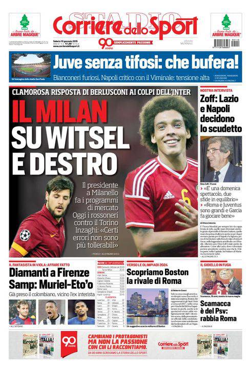 Il Corriere dello Sport parla del Milan che ha puntato forte su Witsel e Destro, entrambi calciatori di qualità.