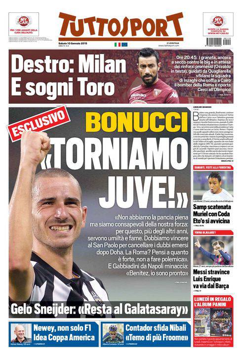Su Tuttosport intervista a Bonucci, difensore della Juventus, che vorrebbe dare la scossa ai propri giocatori.