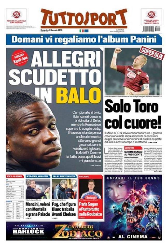 Campionato al bivio: i bianconeri cercano la rivincita di Doha mentre la Roma deve superare lo scoglio derby. Il tecnico intanto pensa anche al mercato: “Servono grandi calciatori sennò valorizzerò i giovani. Balotelli? Con me ha fatto bene. Quelli bravi mi piacciono”. Solo Toro col cuore.