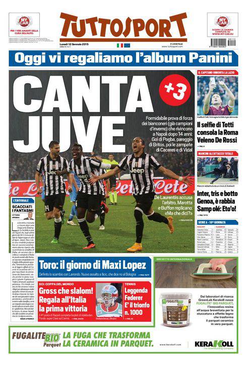 La Juventus vince tre a uno a Napoli e vola a più tre dalla Roma che invece impatta due a due nel derby contro la Lazio.