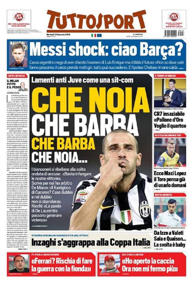 Lamenti anti Juve come una sit com. I bianconeri si ribellano alla solita ondata di accuse. “Basta infangare le nostre vittorie”. Scrive per TuttoSport l’arbitro De Marco: “Il fuorigioco di Cáceres? Caso dubbio e nel dubbio non si sbandiera”. Nicchi: “Le parole di De Laurentiis possono generare violenza”. Cristiano Ronaldo insaziabile: “Pallone d’Oro. Voglio il quarto”.