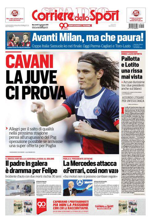 Sul Corriere dello Sport si parla di Cavani che piace molto alla Juventus, i bianconeri ci proveranno anche se sarà difficile prenderlo a gennaio.