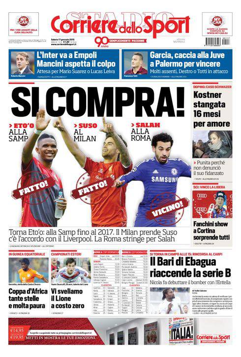 La Sampdoria ha preso Samuel Eto’o, il Milan prende subito Suso, la Roma è molto vicina a Salah del Chelsea.