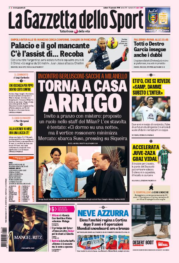 Incontro Berlusconi-Sacchi a Milanello, il presidente del Milan vuole riportare l’ex tecnico nell’organigramma rossonero.