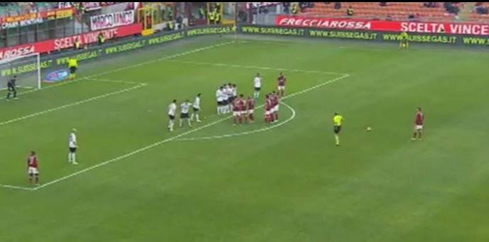 Una domenica da dimenticare per il Milan di Pippo Inzaghi, sicuramente. La sconfitta patita in casa contro l’Atalanta, non ha che aumentato la distanza da quel tanto agognato terzo posto in classifica, ed ha mantenuto ancora aperto il periodo di crisi di risultati del club meneghino. Se però qualcosa da ricordare c’è, e sul web da un paio di ore praticamente non si parla d’altro, è il folle schema su punizione con la “tripla barriera” provato da Jeremy Menez. Davanti infatti la vera e propria barriera dei difensori atalantini, si sono infatti piazzati due muri separati di maglie rossonere, organizzati per permettere al francese un tiro a sorpresa. La realizzazione dello schema è stata anche interessante, peccato la palla sia andata di poco a lato alla destra di Sportiello.