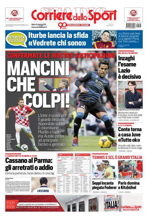 Il Corriere dello Sport parla di Roberto Mancini e dei colpi legati a Murillo e Brozovic, due acquisti di talento.