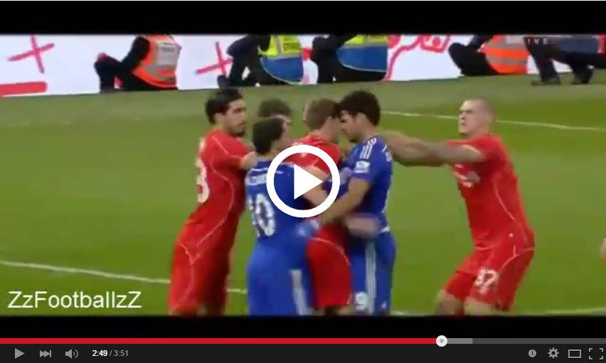 VIDEO DIEGO COSTA – In Lazio-Milan di sabato scorso il difensore del Milan Philippe Mexes ha perso la testa aggredento il capitano dei biancocelesti Mauri con spinte e minacce. Una follia simile è avvenuta nell’ultimo Chelsea-Liverpool di Coppa di Lega, gara terminata 1-0 per i Blues. Diego Costa, irrequieto attaccante di Mourinho, ha prima rifilato un pestone a Can quindi a Skrtel; per finire lo spagnolo ha causato una mini-rissa con Gerrard. Di seguito il video dell’accaduto. Diego Costa intanto è stato deferito e rischia fino a tre giornate di squalifica.