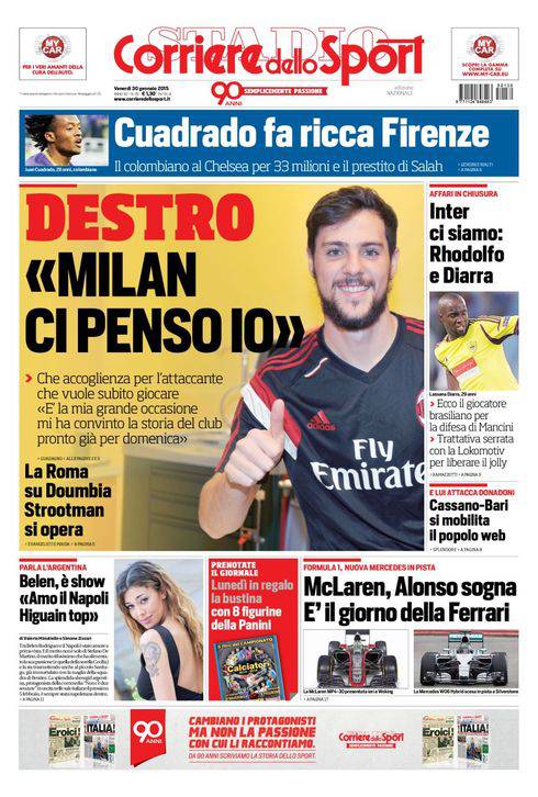 Sul Corriere dello Sport vengono riportate le prime dichiarazioni di Destro che rassicura i tifosi rossoneri.