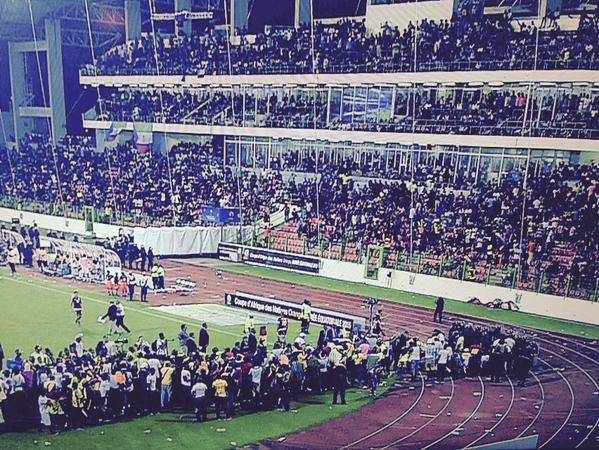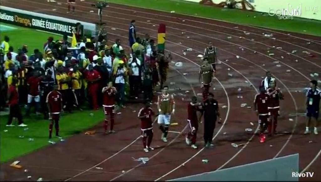GhanaGuinea Equatoriale, partita di Coppa d’Africa, è stata sospesa all’82’ di gioco per ben 30 minuti. Il motivo? Diversi tifosi del Ghana hanno invaso il terreno di gioco e si sono disposti alle spalle della porta della Guinea, dopo esser stati caricati da alcuni tifosi di casa. In campo anche il delegato CAF che è riuscito, con la collaborazione delle due squadre, a far riprendere il match, terminato 3-0.Inevitabili comunque le sanzioni che fioccheranno per quanto accaduto stasera.