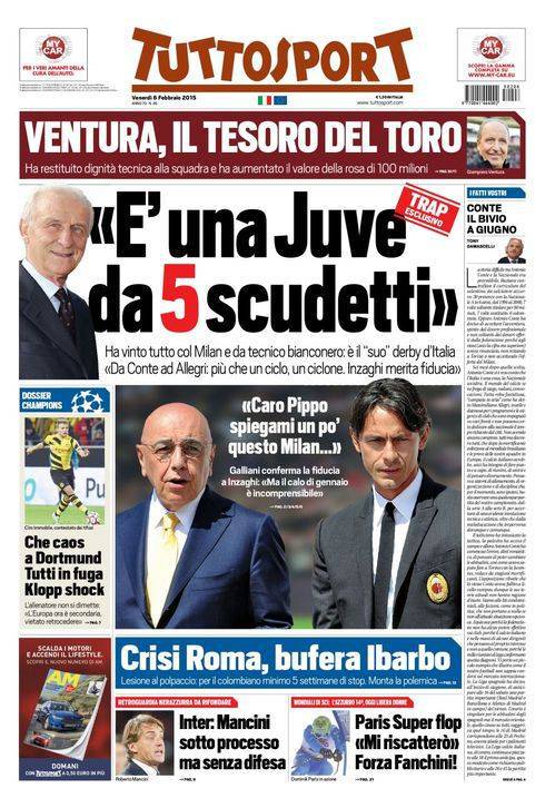 Ai microfoni di Tuttosport parla Giovanni Trapattoni che ha vinto tutto col Milan e da tecnico bianconero. Galliani conferma la fiducia a Inzaghi.