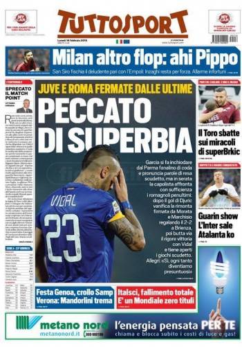 Tuttosport bacchetta la Juventus che contro il Cesena non va oltre il due a due e non chiude la pratica Scudetto.