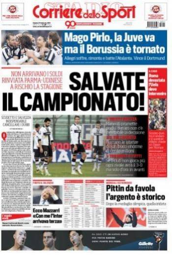Il Corriere dello Sport parla del Parma che non giocherà contro l’Udinese questa domenica a causa della mancanza di soldi.