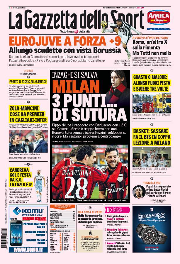 Il Milan vince due a zero contro il Cesena e trova un po’ di tranquillità dopo il periodo nero per Inzaghi e giocatori.
