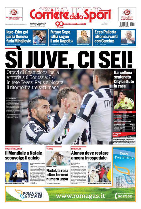 Anche il Corriere dello Sport parla della vittoria della Juventus contro il Borussia Dortmund nell’andata degli ottavi di finale di Champions.