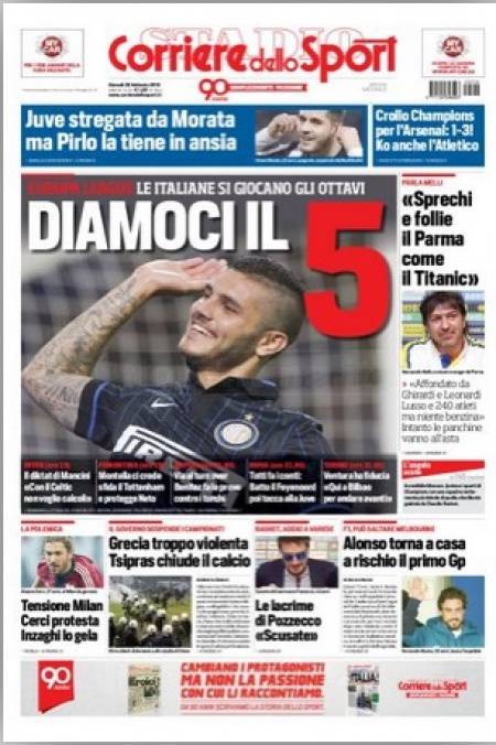 Anche il Corriere dello Sport spera che le cinque italiane presenti in Europa League potranno passare il turno.